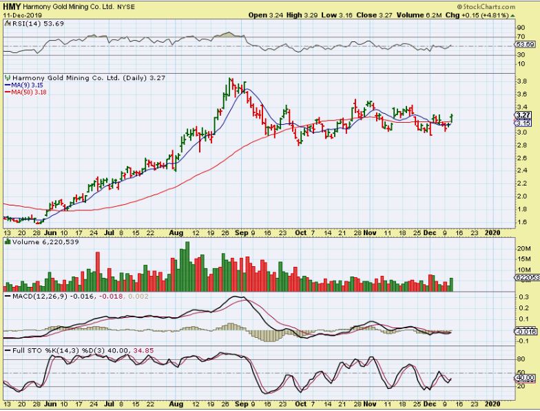 HMY – And HMY is another one that has been consolidating for months and popped with volume after the FED MTG. HMY recovered the 50 sma, so you can buy it with a tight stop at the 50sma, or just buy it and stay in even if it continues to chop.
