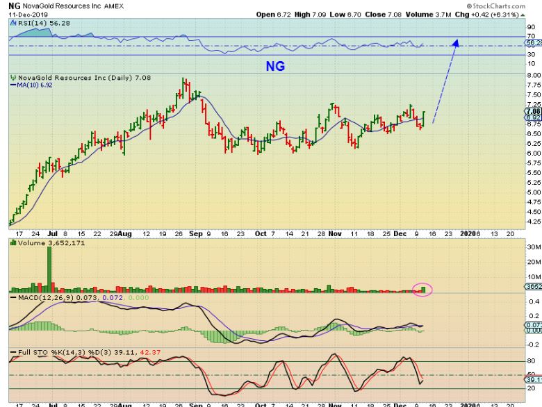 NG – Nova Gold seems to have put in recent lows in early November too. It has been choppy, but without the likelihood of an ICL sell off ahead, these lows should hold and price should run higher sooner or later. So this is still a lower risk Buy.