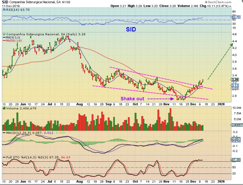 SID – We’ve discussed METALS as being bullish now too : CLF, CENX, HBM, AKS, X, FCX, GGB, TMST, etc etc. SID is acting bullishly, riding along the 9 sma & breaking form a sell off. It seems like you can ride it along that 9 sma.