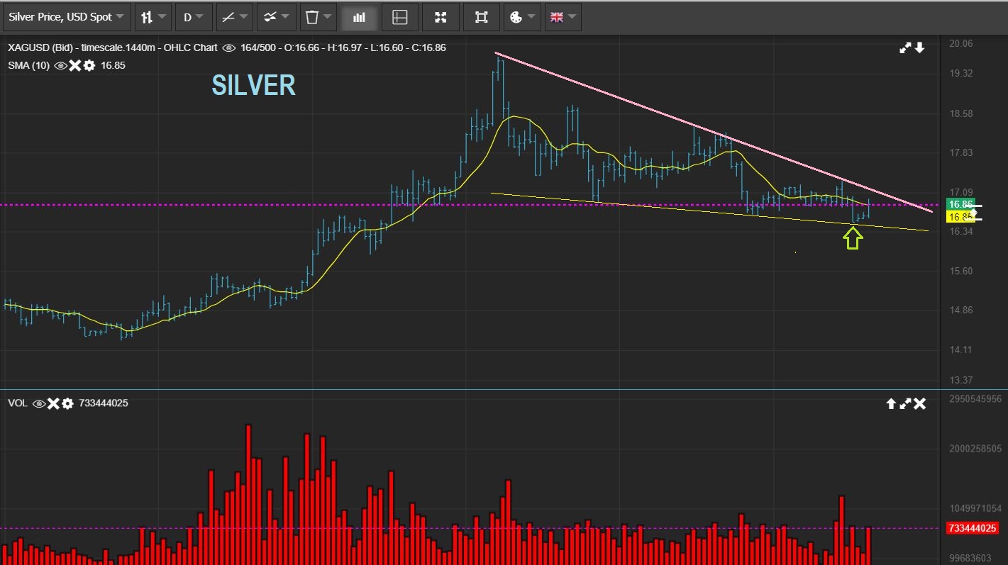 SILVER – I’d love to see this break out and run in a Post-Fed rally.