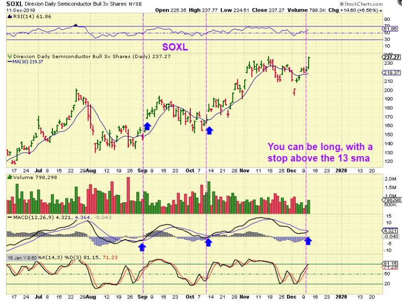 SOXL for 3X Semi – When I look at the SOX, it also popped off of the 10sma, so you’d still be in this trade if you went long. The Semiconductors looked rather strong, so I looked at 2 things.