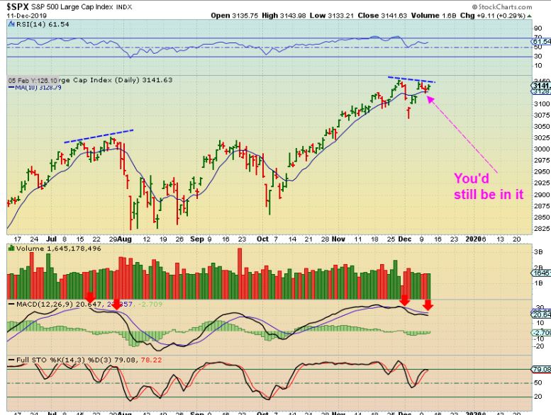 1. Notice the July Double top in SPX, and we see that the SOX was stronger then too, but it still rolled over into a steep drop, so a stop at the 10 sma would have saved you.