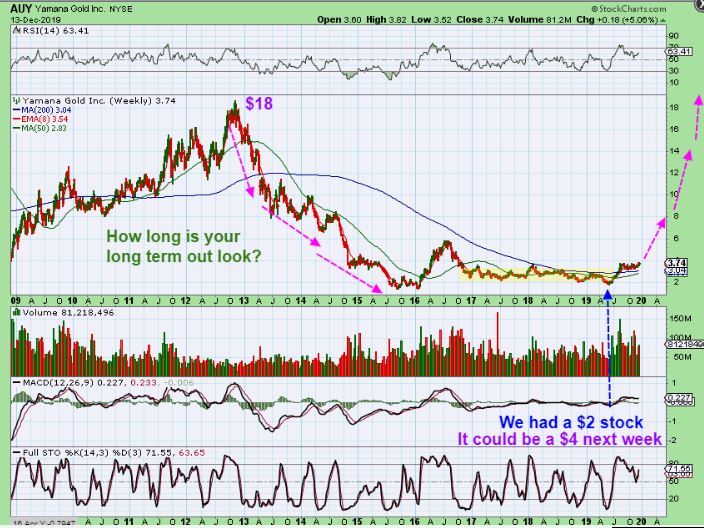 AUY – Now take a step back at AUY.  In a basket of Miners, This can be bought as a long term BUY & HOLD (Chris)  🙂   It has proven itself with a long sideways consolidation and not a deep correction. This was a $2, now heading to $4, possibly heading to…  $20 + over time.