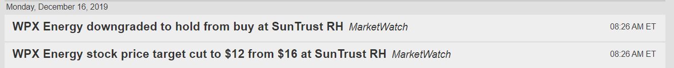 WPX –  An Energy Stock.   Oooh, Big Down grade, and a Price target cut to $12 yesterday pre-market, as seen here.  This ought to kill the stock…