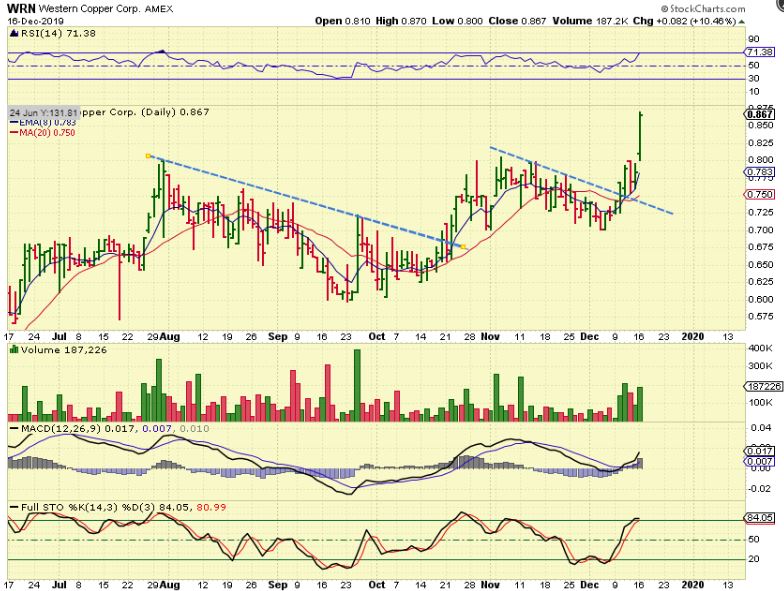 TGB – Yesterday it pushed higher again with even more volume, so I consider this a buy  ( Copper, Steel, & other metals  stocks are doing well).  HBM, FCX, WRN, SCCO are other copper stocks. FCX & SCCO have been running strong, so these may be next…