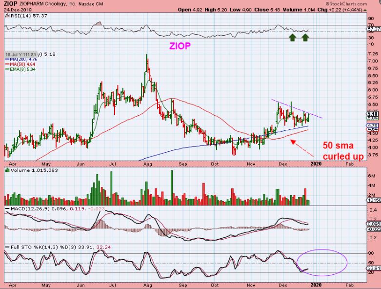 ZIOP is forming a triangle consolidation, similar to a Bull Flag.  It can be bought with a stop, or buy the break out if we see one.