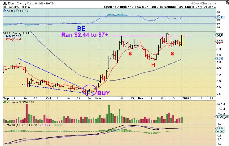 BE – This was pointed out as a buy under $3. 00 in October as a wedge break out…