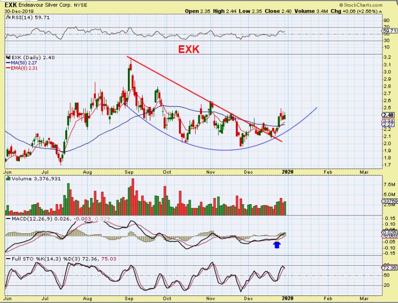 EXK – It is getting harder to find lower risk entries near support in the Mining sector, but EXK & USAS are still a bit sluggish.  Both are fairly close to that 50sma and I would expect it to play catch up.