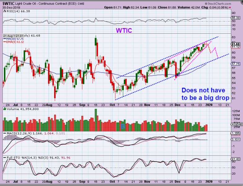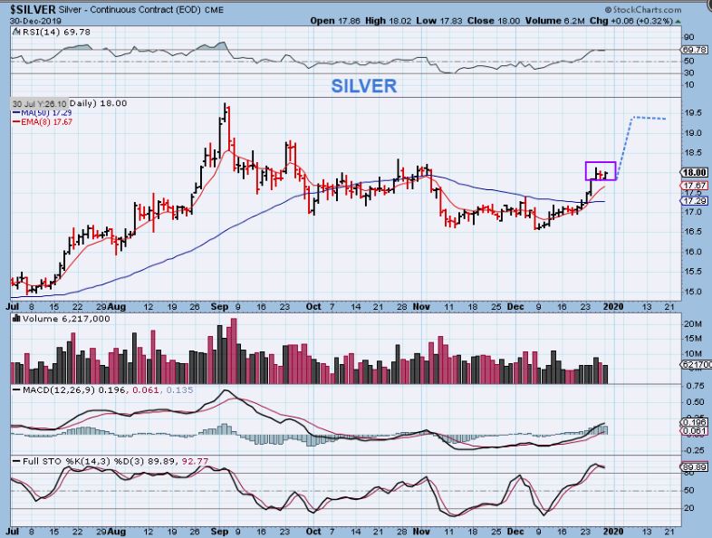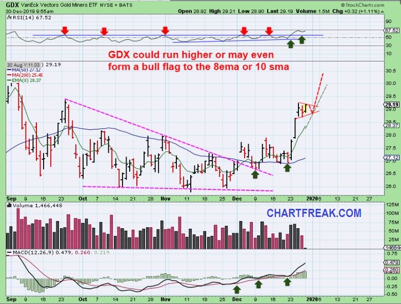 This is Dec 31st, the final trading day of 2019. As mentioned in the weekend Big Picture Report, many Charts are setting up to make 2020 look like it will be a great year for trading / investing / Making Money.  Lets take a look at the charts and see what the current set ups look like going into what should be a lighter volume day of holiday trading  ( Although I think you may remember what happened when I said that for last Tuesdays 1/2 day trading before the Christmas holiday).