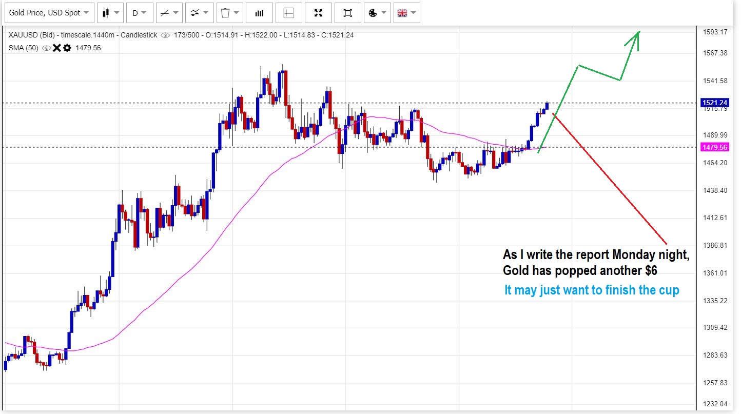 CUP FORMATION:  I mentioned this in the weekend report. Using this chart I showed how in the past I have seen the right side of a cup form in a similar manner as the Left side dropped.