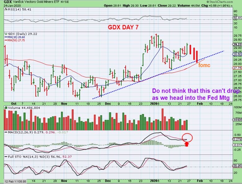 Since we had that ‘reaction’ on Thursday as GDX dipped, I am going to say this now to prepare the readers for what could happen next week. We could rally higher, but please know that YOU MIGHT SEE GDX DROP HEADING INTO THE FED MTG too. If you see this on day 8,9,& 10- it doesn’t change anything about the daily cycle unless recent lows get taken out.