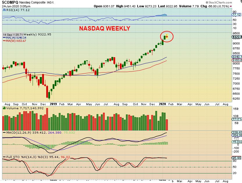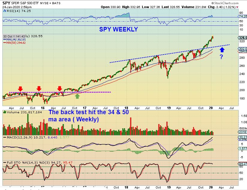 SPX WEEKLY – The last big consolidation in 2016-2017 broke out and back tested about 6 months later, but it was more of a sideways move, & then it ran higher. Will this back test at the next ICL, or will it just melt up into a parabolic blow off top? We have to wait and see.