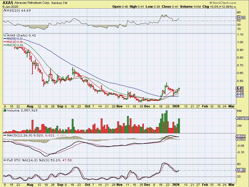 AXAS – I also like AXAS here with strong volume popping . It broke the 50 sma, and back tested it .