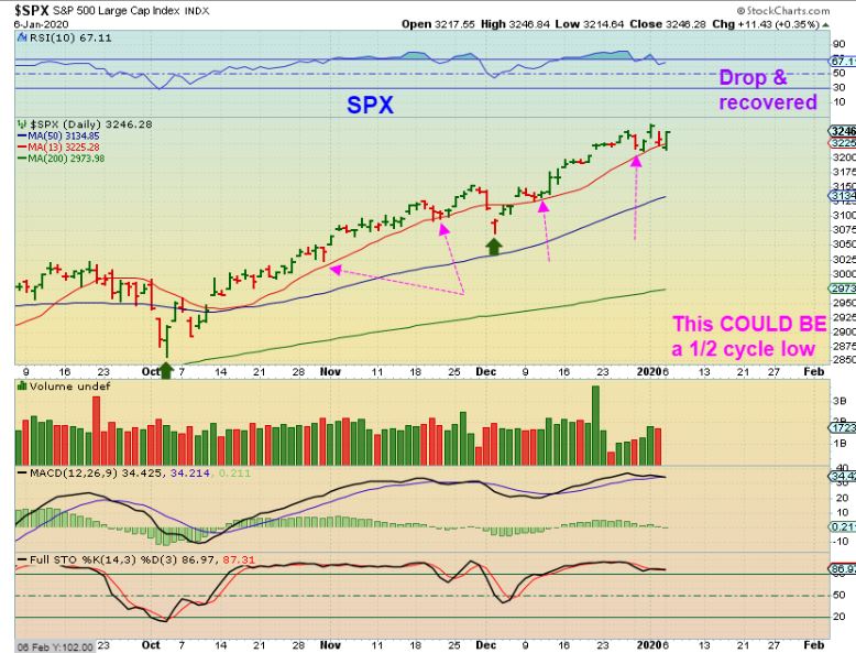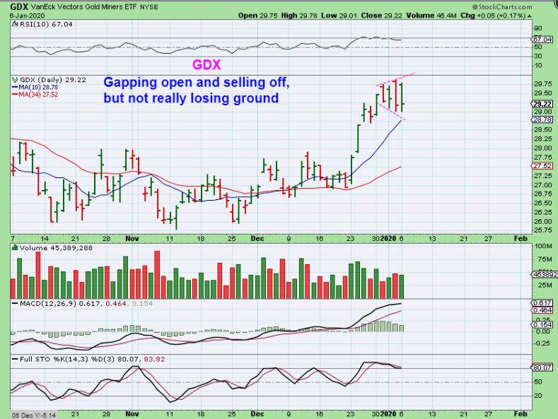 GDX – Jan 3 saw a day 35 high, if we were counting days up from the lows. It is at former highs and that can be where sellers are. Usually you get a pause or dip before heading higher.
