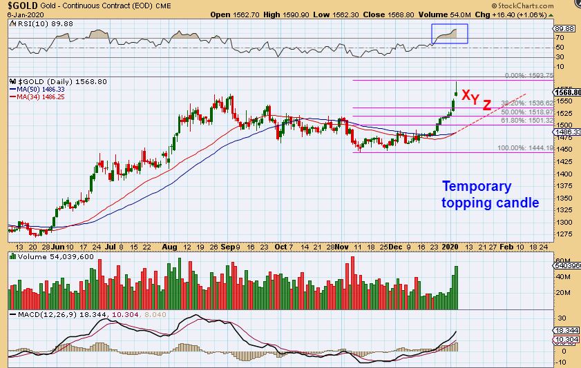 GOLD – Gold futures were up pretty big again, so Gold ran higher and then sold off. That left a possible topping candle. We could get a pause or pull back here.