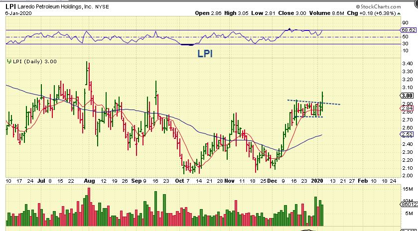 FROM A PRIOR REPORT: LPI JAN 2– I like what some like LPI are doing. It is a bullish crawl or bull flag above a down channel. I like PUMP,TUSK, WTI, WLL, OAS, and others too.