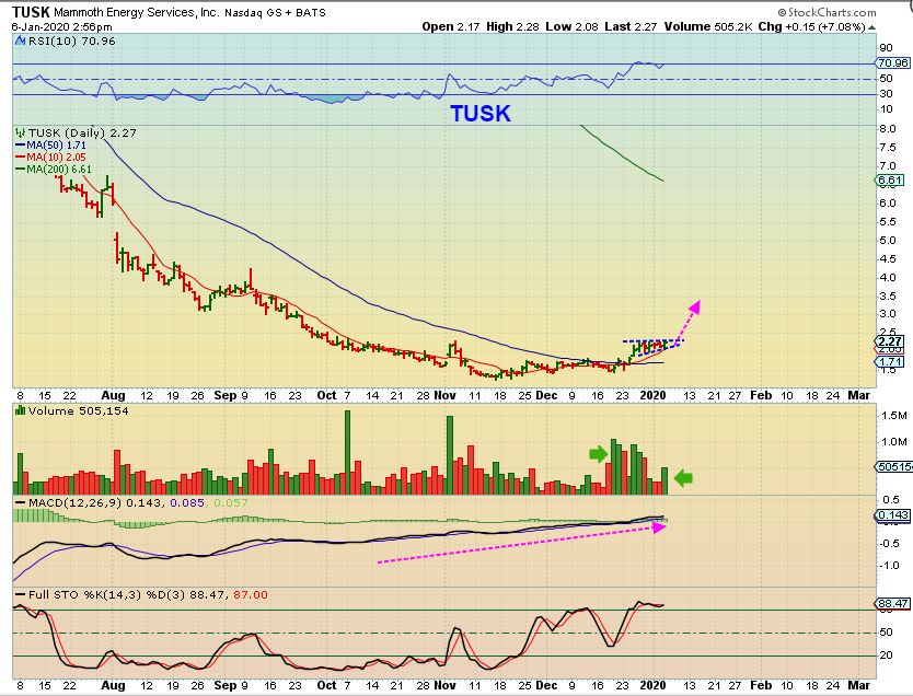 TUSK – It closed near the highs and looks to be breaking out. This is a buy.