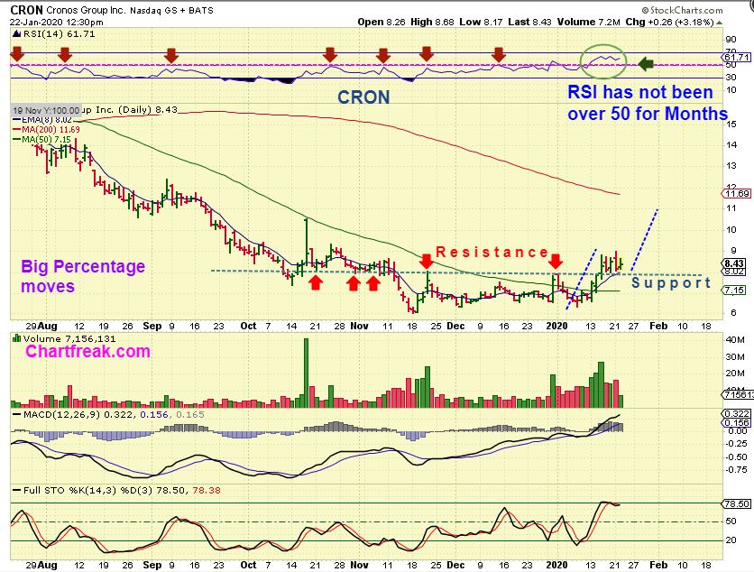 CRON – I posted this chart to show how CRON landed on what should be support, as it looks to be preparing for another leg higher soon. Many look like this, so the sector remains bullishly set up near the lows.