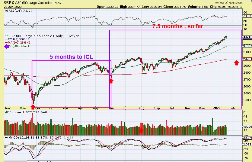 SPX – As a reminder, if the markets are not just going to do a blow off top, melt up type of parabolic run, we are also coming due for an ICL. I would expect a dcl soon, and then the next daily cycle would have to peak early & rolls over (Unless we go parabolic into March like 2000).