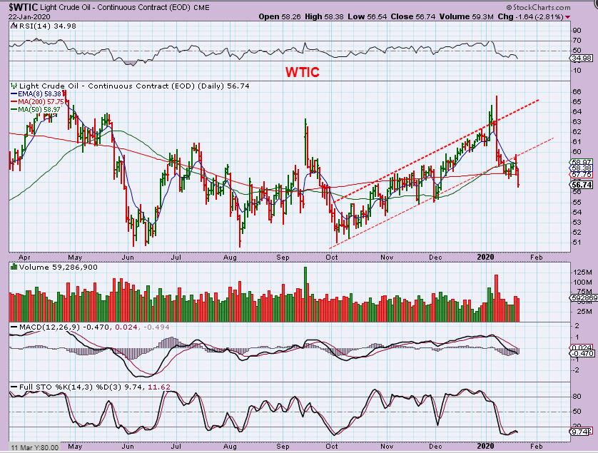 WTIC – We have all seen OIL accelerate when it sells off, often several days down in a row. If we get that here, it may resemble this. I’m just going to let it play out into a dcl and go from there.