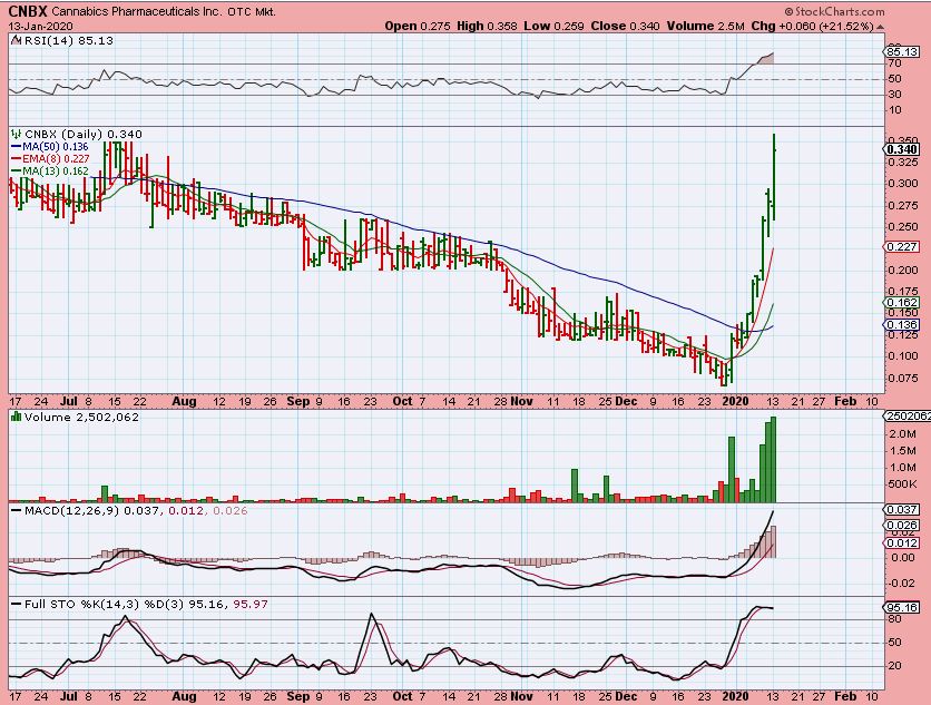CNBX – See also OWCP, BLOZF, etc. I’m not saying that they’ll all run like this, but when these get going, they have done this in the past.