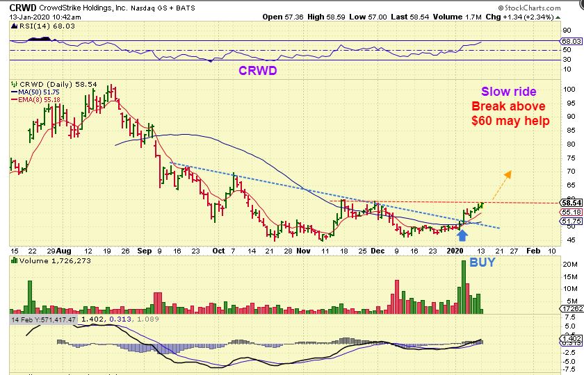 CRWD – CRWD was a buy near $50 and it is still progressing to the November highs too. I think that it could pick up speed if it gets through this resistance. Let me show you what I mean…