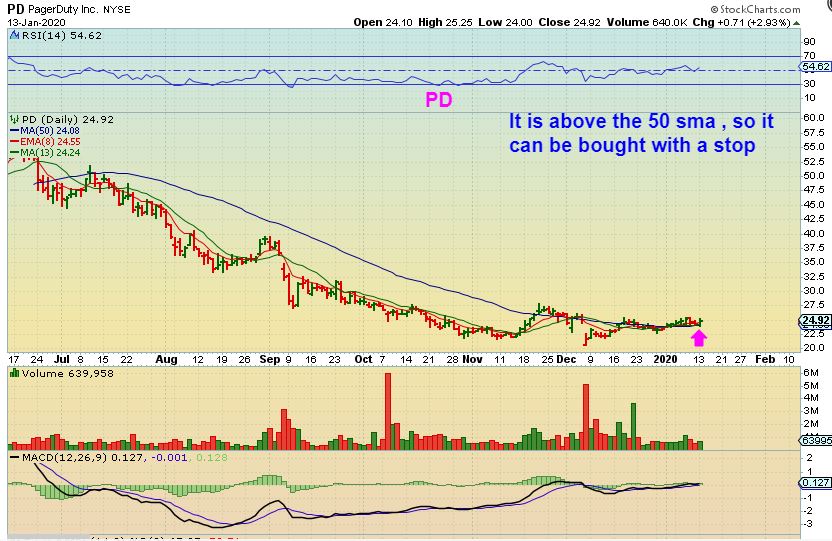 PD – This is another candidate that can be bought above the 50sma & hopefully it just starts to take off. SO PD is a buy with a stop at the 50 sma