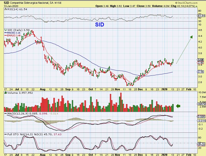 SID – A Steel stock that looks ready to break out. I see it as a buy with a stop under this consolidation. FCX is breaking out too. So Metals may be getting a head start too, on an eventual market dip / crash?