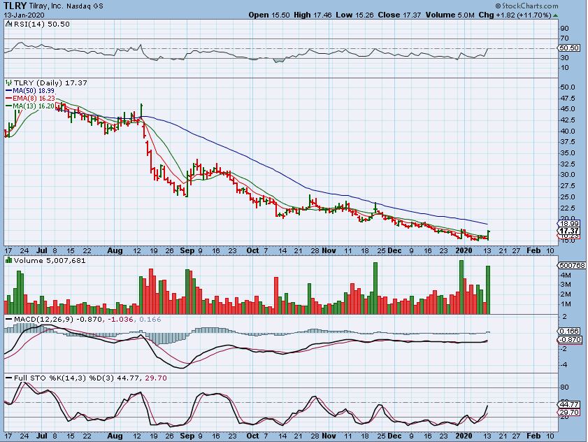 TLRY – TLRY can make up some lost ground fast. If this gets above the 50 sma, it will attract attention quickly. These could be the lows in this $16-$17 area.