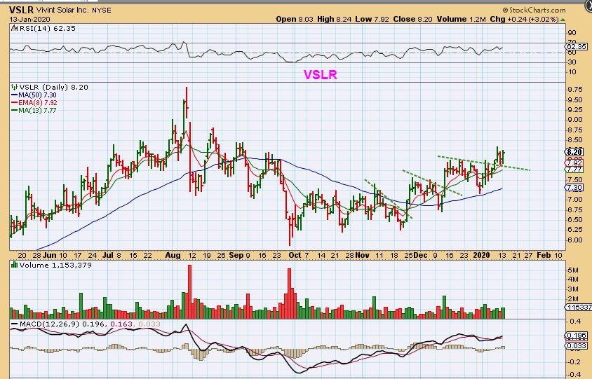 VSLR – We discussed VSLR, ENPH, CSIQ, JKS , and others as Solar stocks bullishly set up. VSLR is still trying to push higher, but it is a slow process with this one.