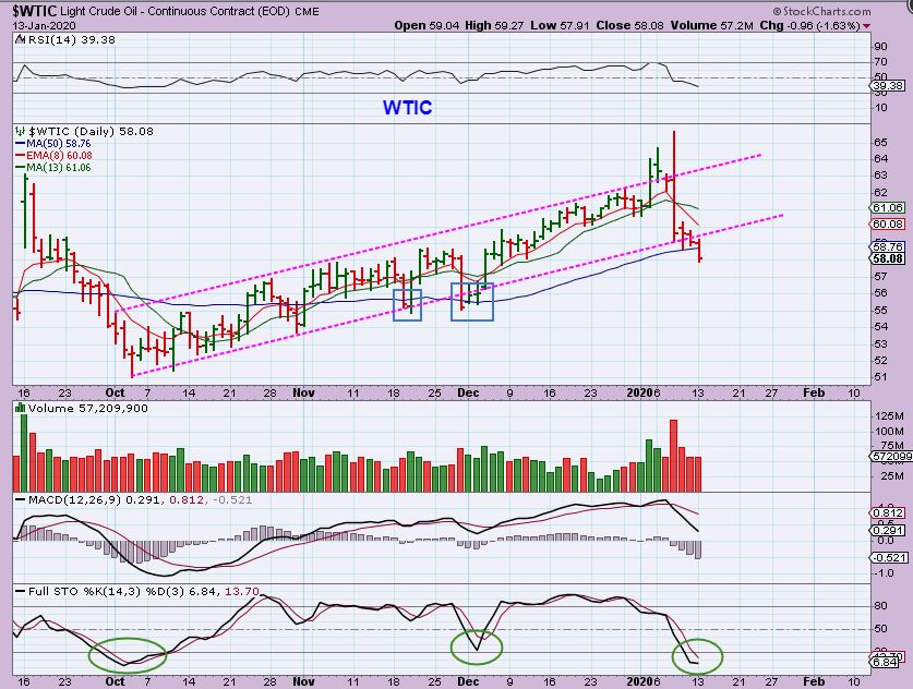 WTIC – Oil continued to sell off and broke below the 50 sma. I put squares to show that we have seen this before, but after the Iran ‘over throw’, it crashed and has continued lower.