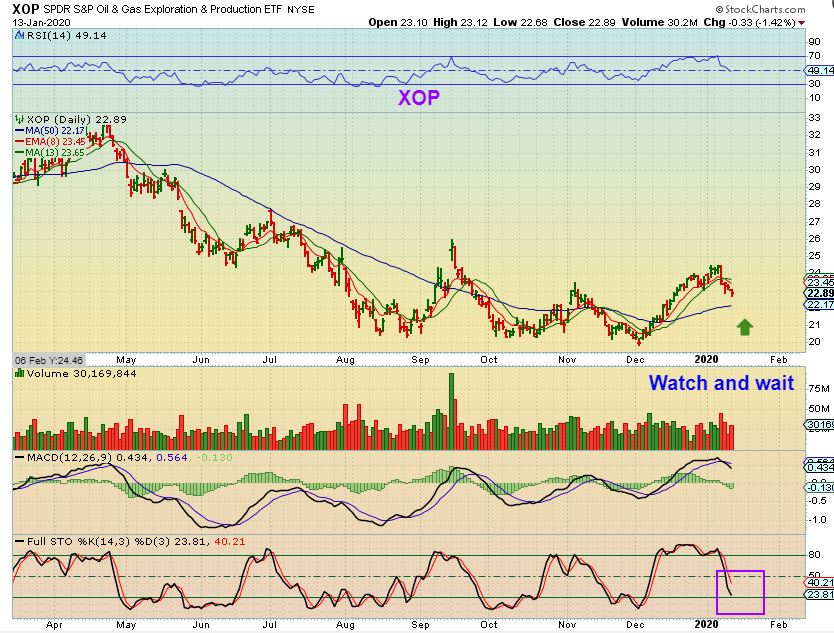 XOP – The XOP looks like it can drop further. The 50 sma is lower and it is not quite oversold. This selling looks lighter than Oils selling, so we may see a reversal near the 50sma , but I would wait to see how this plays out. Look at OAS, WLL, and DNR and you will see that they are near the 50 sma. DNR actually reversed on the 50 sma with Oil selling off , so these are things that I will watch for as Oil sells down.