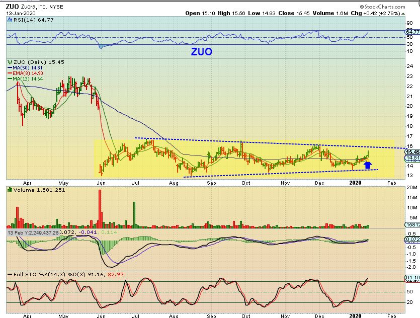 ZUO – ZUO popped above the 50 sma and is also in a multi-month base with a gap on the left side of the chart. It can be bought here , but there is no guarantee that it’ll break out.