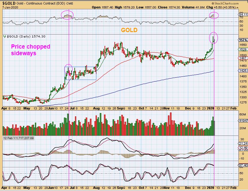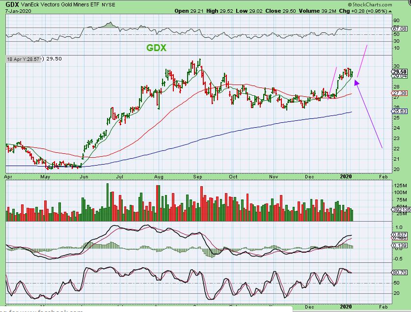 EDIT:  I had the charts for this report captured and most of it written by the time I heard the news that Iran had presented a Missile Strike and the futures blasted off.  Precious Metals and Oil up, General Markets down.  Often these news events get over done quickly or even  instantly, and then drift back down a bit.  Follow through can take time to develop unless the move was already going to happen anyway, so I am going to present the report pretty much as it was written. I have already expected Gold to continue higher over the next several weeks, and the general markets looked  ready to get choppy and dip lower soon, so lets get to the report and see what the charts were saying-  I still expect the same outcome…