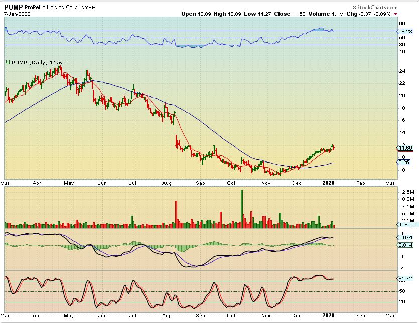 PUMP – On Tuesday it dropped to fill the gap and back test that 10sma. It bounced, so this is a buy with a stop (I’d say a bit loosely) under that 10sma .  You do NOT want to ride a back test of the 50sma down if that happens, but this looks ready to run higher.