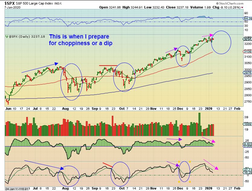 SPX – These markets were running strong out of that last dip but have recently started to enter choppy trading and may even start dropping.  The divergence on these indicators is telling me to expect a dip.