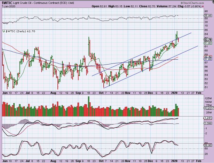EDIT:  After the Iran Missile attack, Oil popped back over that upper channel line, but is drifting back down again