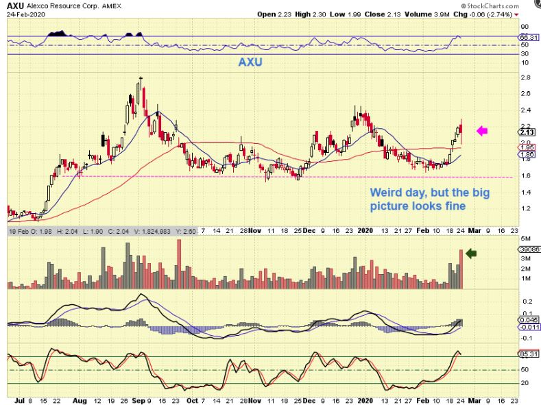 BY REQUEST: AXU popped higher, then sold off, and then tried to recover. That is an odd candle with extreme volume and I don’t quite know what to make of that indecision short term really. That said…