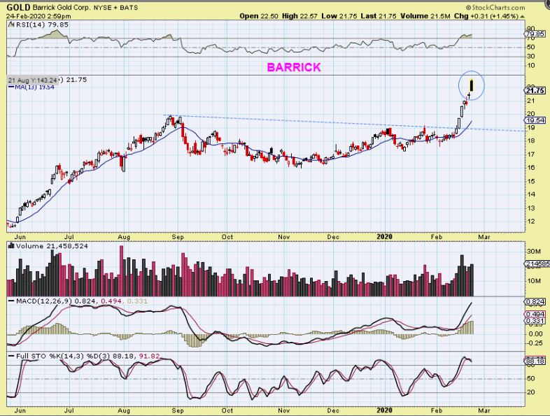 GOLD (BARRICK) – After this run, a small dip could also be similar to the chop /dip that we saw in June. A bigger dip would become a back test.