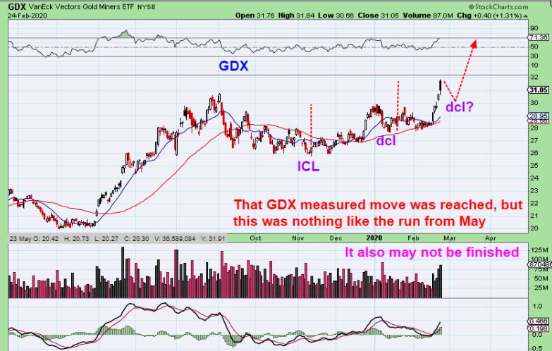 MONDAY GDX – THIS RUN OUT OF THE NOV ICL WAS NOT AS GOOD AS THE ICL RUN FROM MAY, the way I showed that Golds run was. So I would say that this CAN still go higher, but it may dip first as shown…