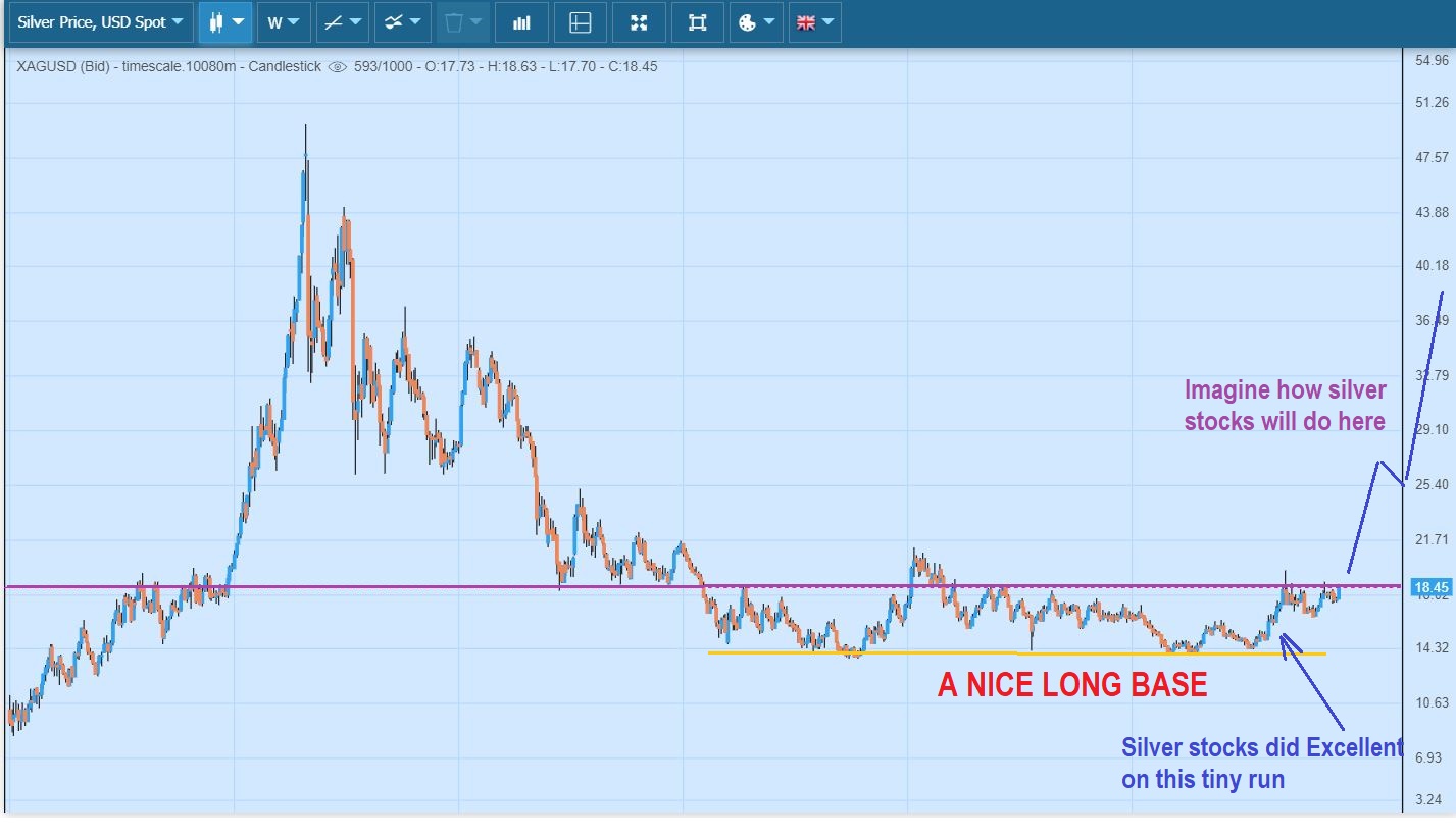 Just remember that the bigger picture is this Multiyear base. Can you imagine how Silver stocks will perform when this gets going? The big picture is still screaming that we should be making great gains this year in the Mining stocks.