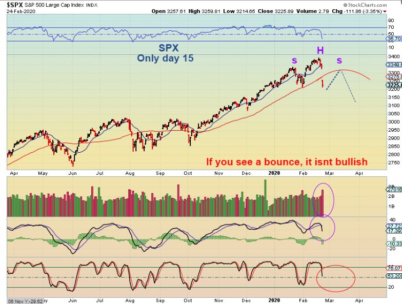 SPX – We broke the DCL lows, that is a failure. I just want to say that I saw people buy the dip Friday heavily, and I still see people going long, buying yesterdays drop. DO NOT FOLLOW THEM. This was day 15 of a drop that can last to day 40.