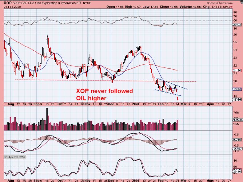 XOP – And the XOP was not following oil higher, but it looked like it may be finally putting in a low. It gapped down to new lows on Monday too. The MACD looked good here, but I don’t trust this sector yet, because there is no sign of strength.