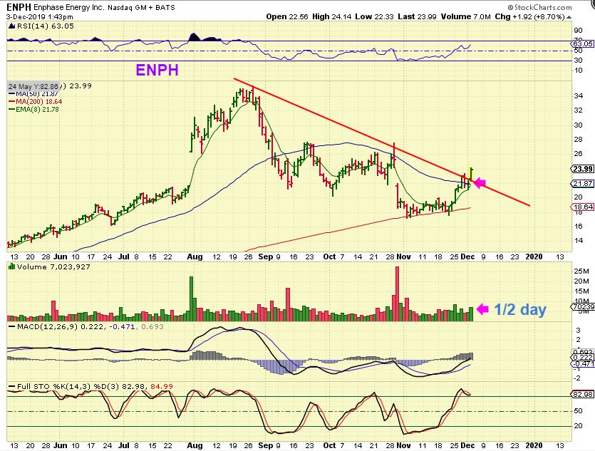 ENPH was recommended several times in December on these charts. Here it was breaking out at $23 after the buy of the back test of the 200sma at $18.