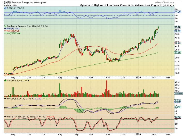 ENPH – Today it is $40. The solar sector ( this company provides components to it) has done well.