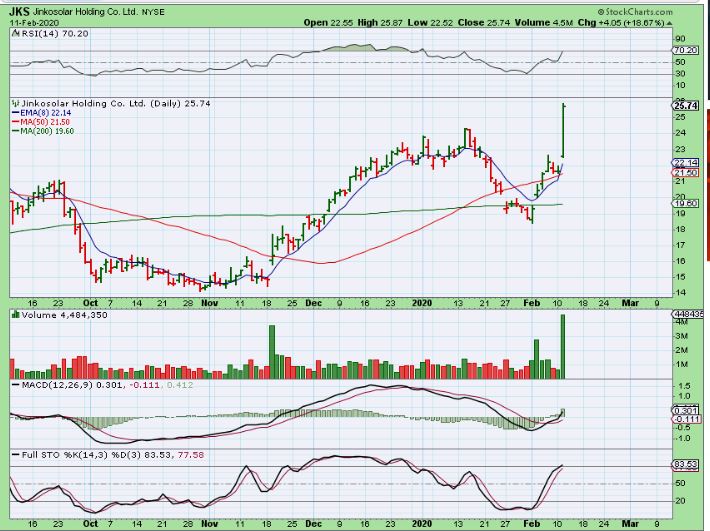 JKS – This was the same set up as CSIQ above with the 50 & 200sma & it popped almost 20% yesterday.