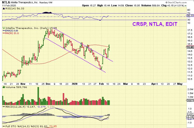 I ALSO MENTIONED THAT GENE EDITING PHARMA STOCKS LIKE CRSP, NTLA, and EDIT were setting up bullishly. NTLA tried to get above that 50sma yesterday.