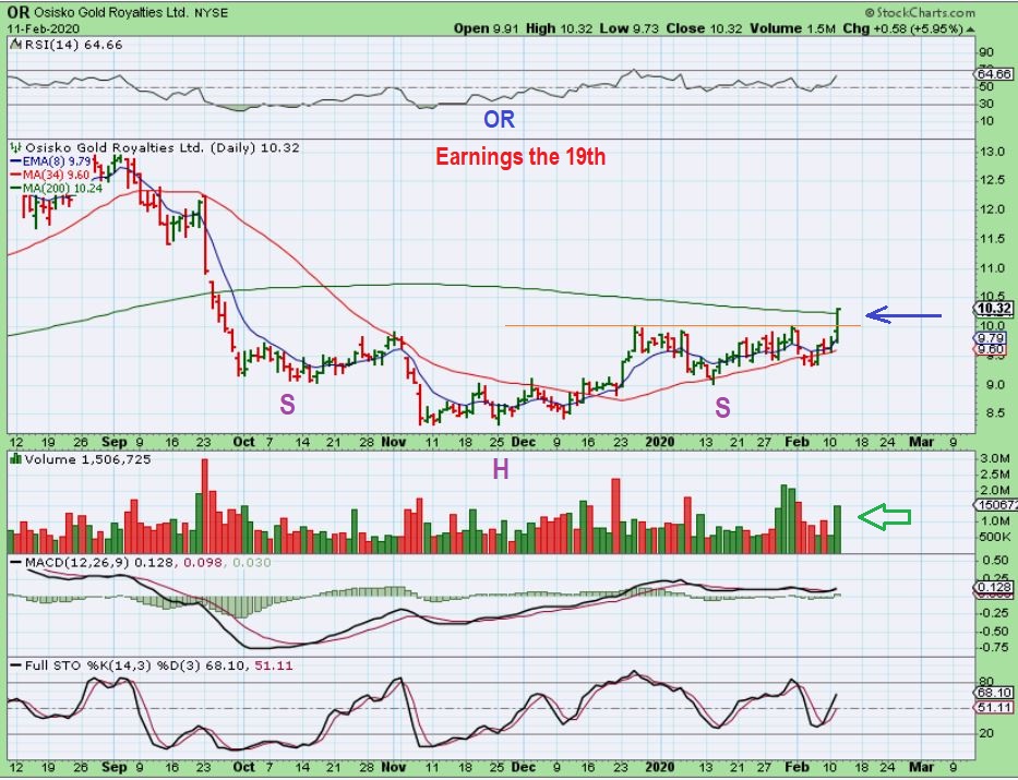 OR – The Miners have been choppy, and Earnings are next week, but this set up is really nice. You can see an inverse H&S that faithfully climbed the 24 sma and is now breaking out above the 200sma. This is a buy because it has not broken down with all of the choppiness in Miners. Some Miners, like ELYGF, may buck the choppiness.
