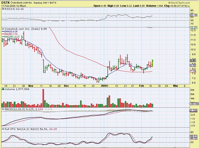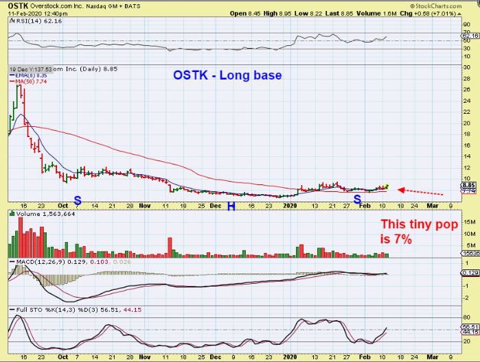 OSTK – As a close up, the set up tagged the 50sma twice and is trying to push higher. I own it with a stop at the 50sma.