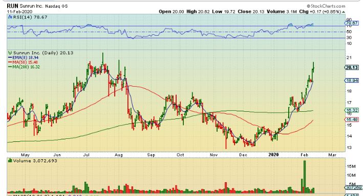 RUN – Notice how RUN also came out of the lows, back tested the 200sma, and continued higher. So CSIQ & SPWR are may be playing catch up in a sector that has done well.
